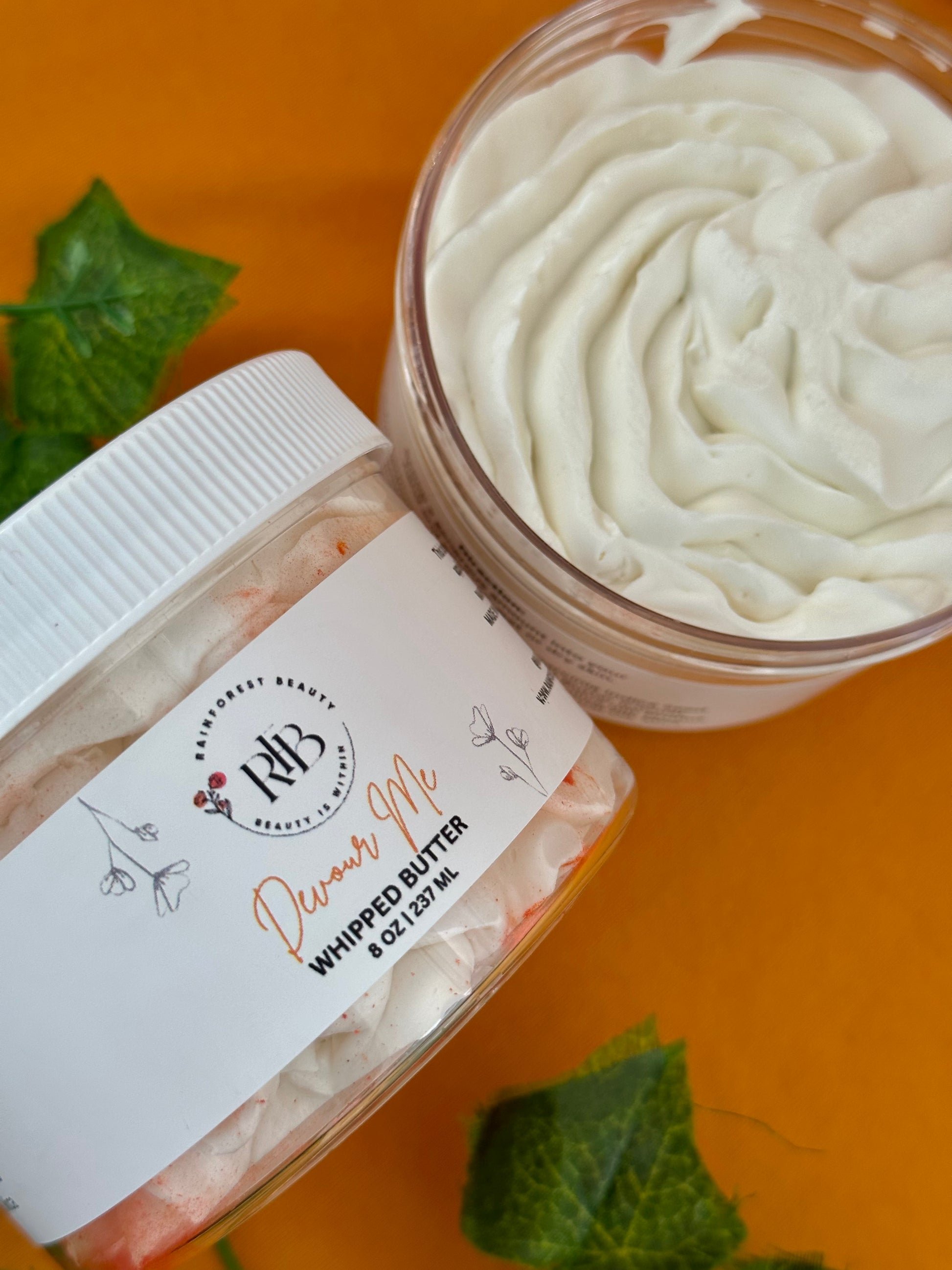 Devour Me Body Butter is a luxurious moisturizer with creamy texture and a tropical aroma. Its non-greasy formula melts into skin on contact, leaving your body hydrated and fragrant. Its invigorating scent of pineapples and papaya creates a delightful experience. Leaving your body ready to be devoured. Pair with our Devour Me Sugar Scrub for an ultimate spa experience.