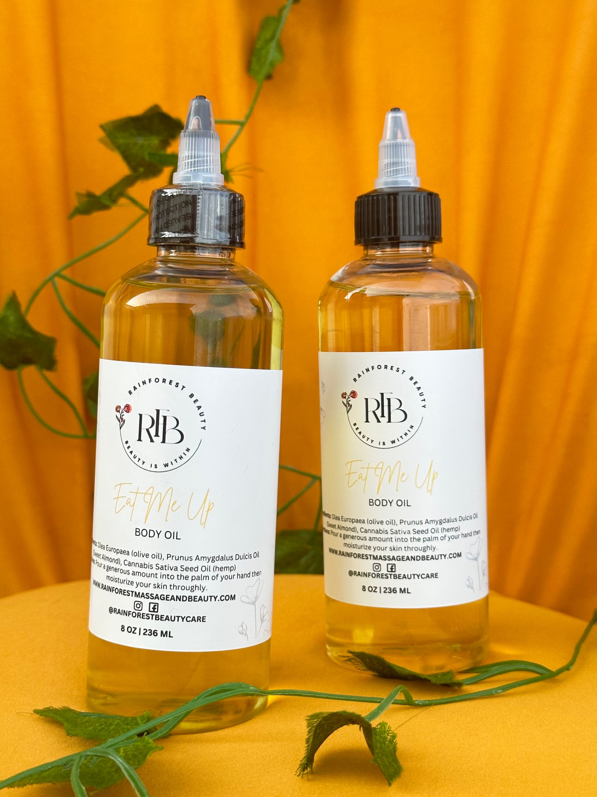 Eat Me Up Body Oil is an aromatic blend of Japanese Pear and Ginseng that deeply nourishes and rejuvenates the skin. Made with high-quality natural oils that helps keep skin soft and smooth without the use of artificial ingredients. Once he smells this delicious flavor on you girl he might want to eat you up! Pair with our Eat Me Up Sugar Scrub for the ultimate pampering experience.