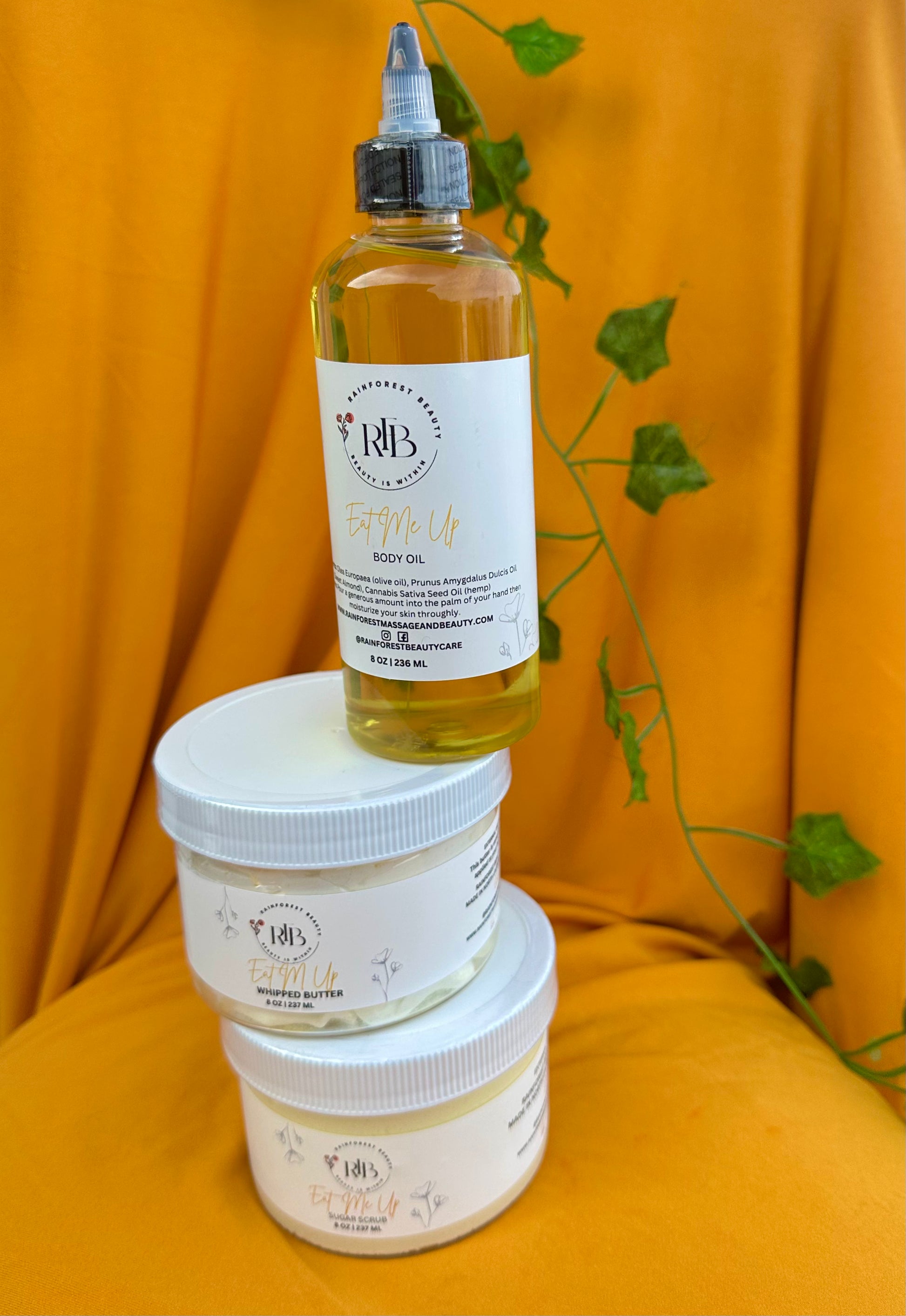 Discover your perfect skincare routine with our Eat Me Up Spa Set. Nourish your skin with the unique combination of ginseng, pear, and white tea aromas, designed to give you a radiant summer glow. Unlock that confidence you didn't know you had in you this summer.