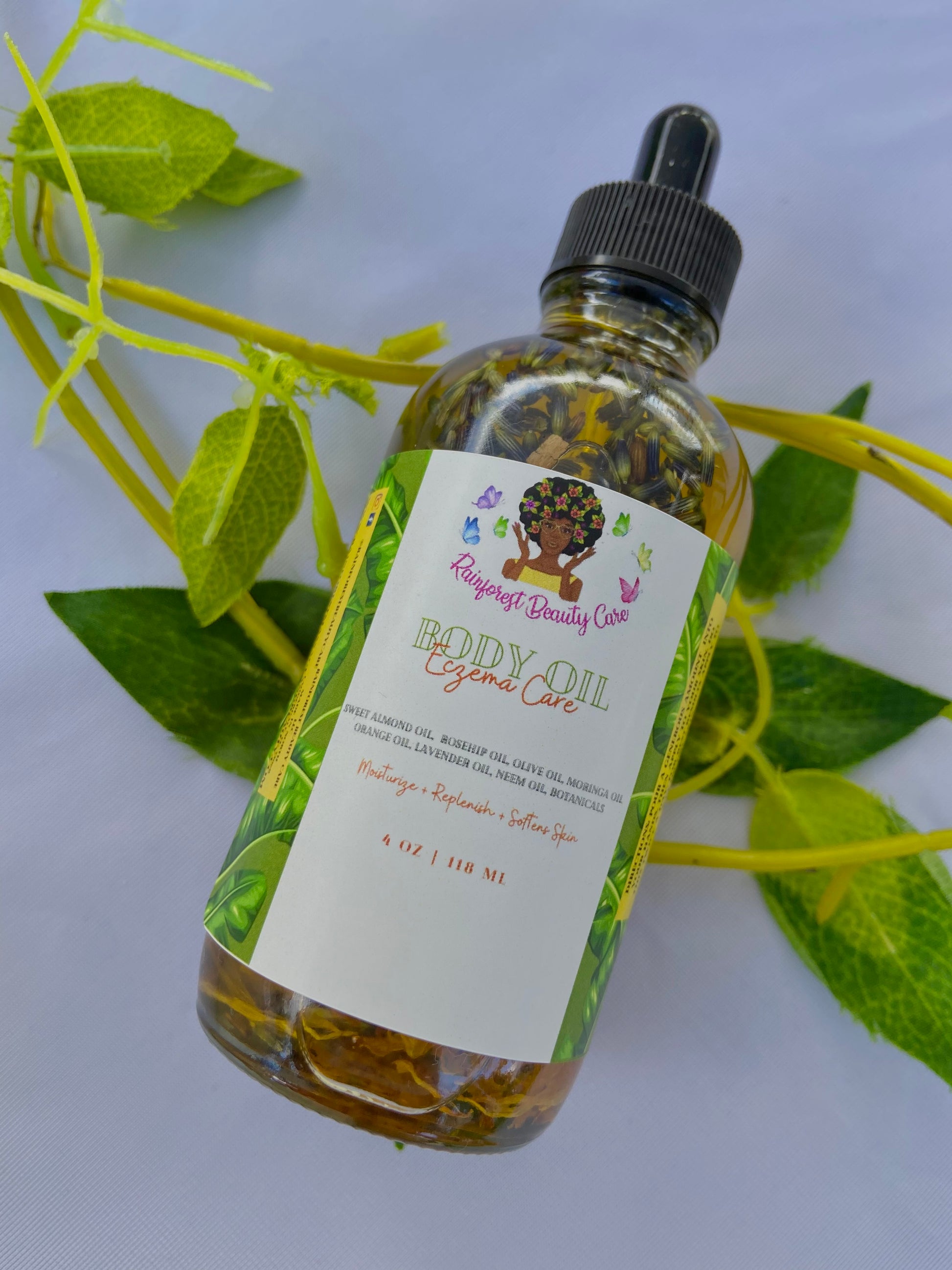 Our Eczema Body Oil is formulated with 3 Eczema fighting ingredients. Neem Oil, Moringa Oil, and Rosehip Oil