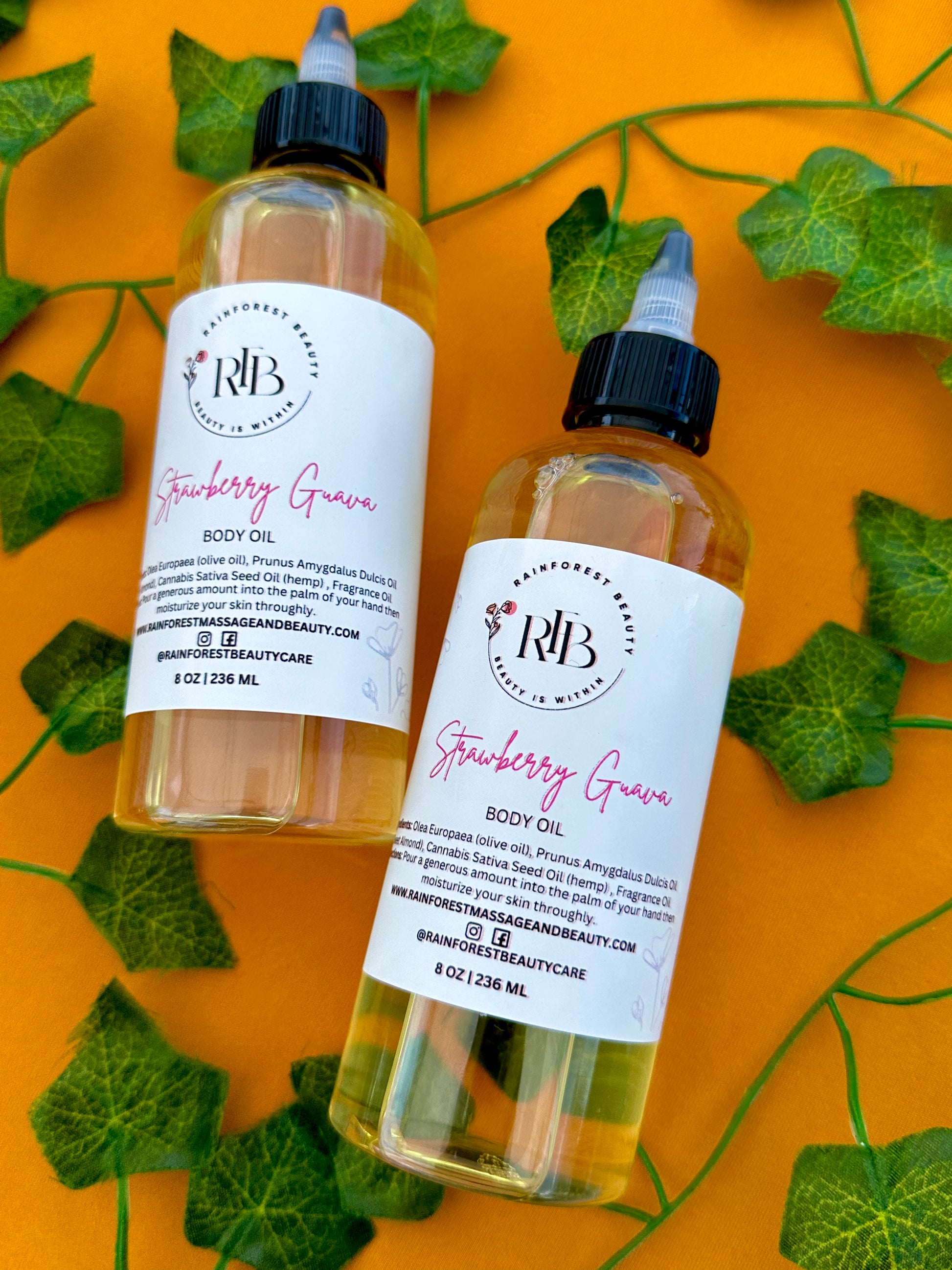Usage Instructions: For optimal results, apply Strawberry Guava Body Oil to your skin and allow it to absorb for 5-10 minutes before putting on your clothes. This allows the oils to penetrate deeply, providing lasting hydration and letting the vibrant tropical scent fully develop on your skin.